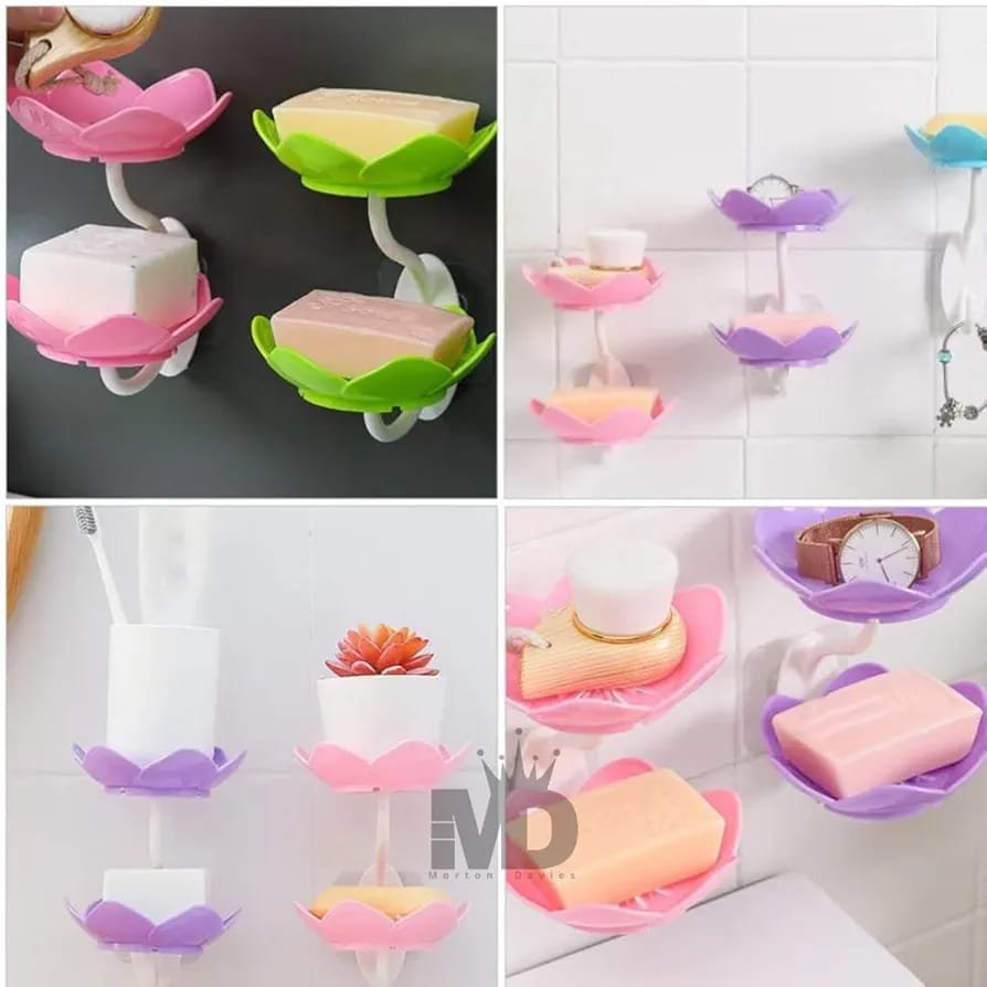 Organize your bathroom or kitchen with this stylish and functional Wall-Mounted Drain Soap Box. Designed with a double-layer structure and a lotus flower-shaped tray, it provides ample space for your soap while ensuring it stays dry and clean. The removable soap dish makes it easy to clean, and the non-slip design ensures it stays securely in place. Perfect for keeping your soap neat, dry, and accessible without the mess.